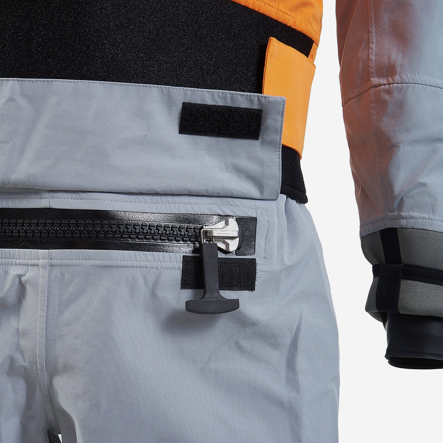 - The drysuit features a YKK waterproof zipper. Zip it up slowly and straight to avoid pinching fabric or causing damage.