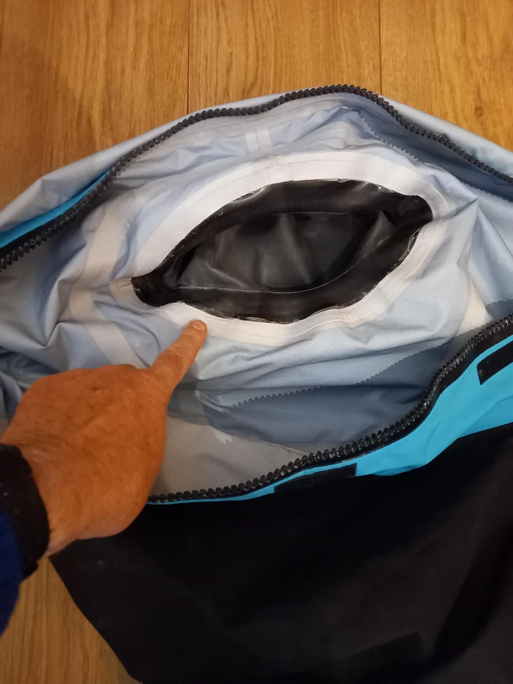 - Inspect zippers, latex neck seals, and cuffs for any cracks or damage.